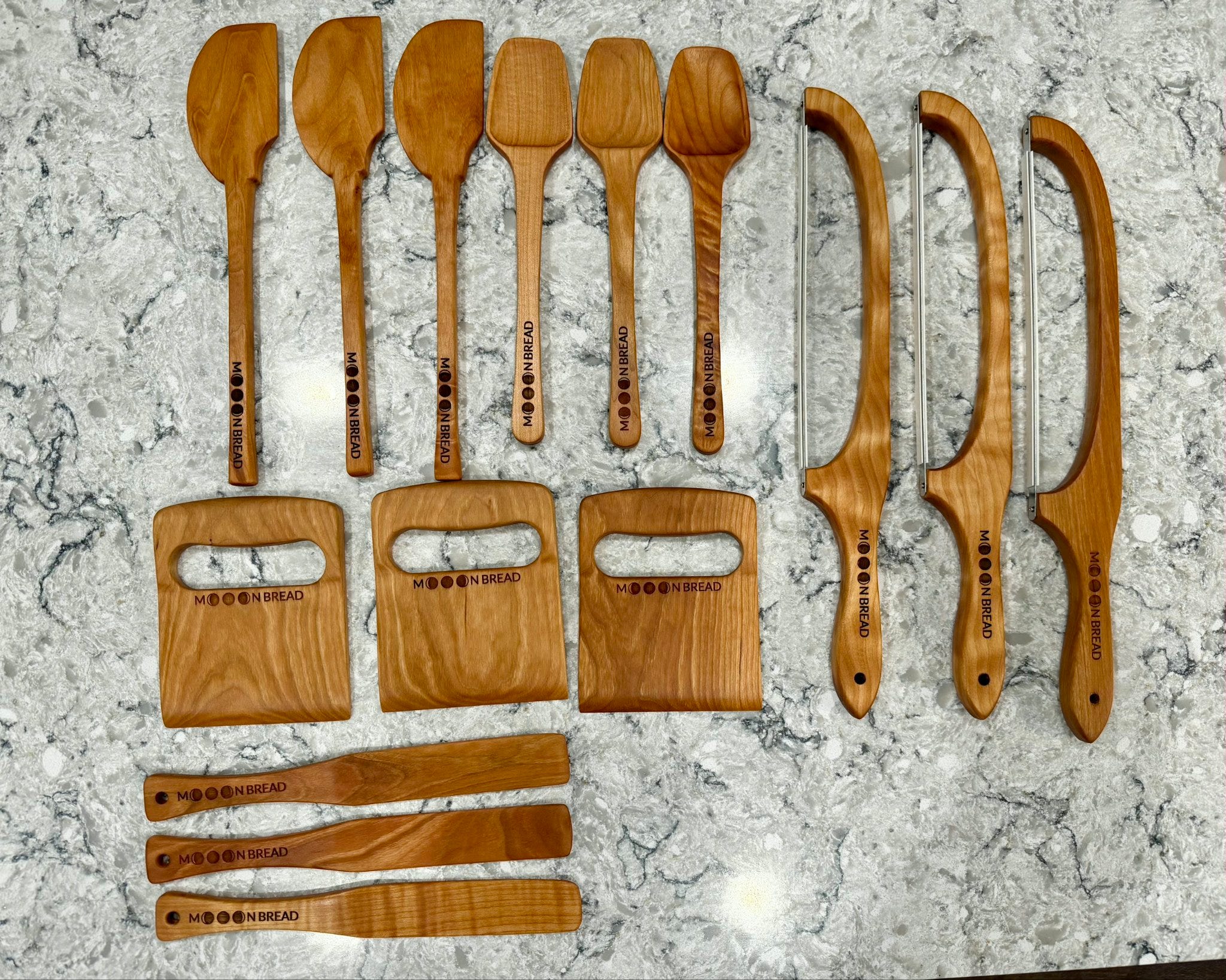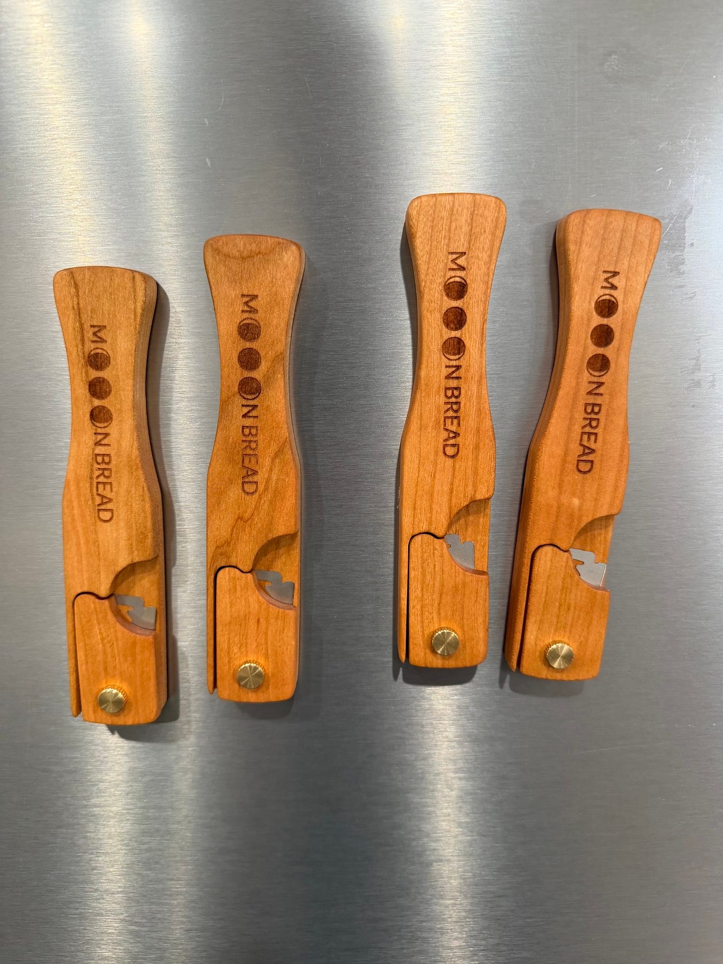 NEW MOOON BREAD WARES: Thank you to a recent student (and assistant) who connected with me with a woodworker, the Mooon Bread Wares I have to offer just expanded! They should be on the site soon, and some recent students have already bought some, but I now have pizza peels, scoring lames, mooon spooons, bow knives, wooden bench scrapers, starter mixers, and more to come. A big batch coming in for the lames that have magnets built in for sticking to your fridge or oven :)